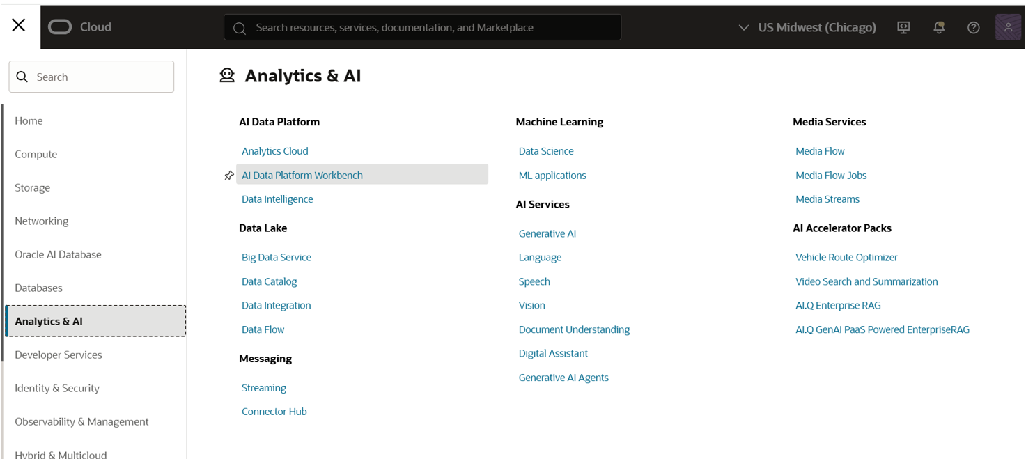 Step 1: Go to OCI Console → Analytics & AI→AI Data Platform.