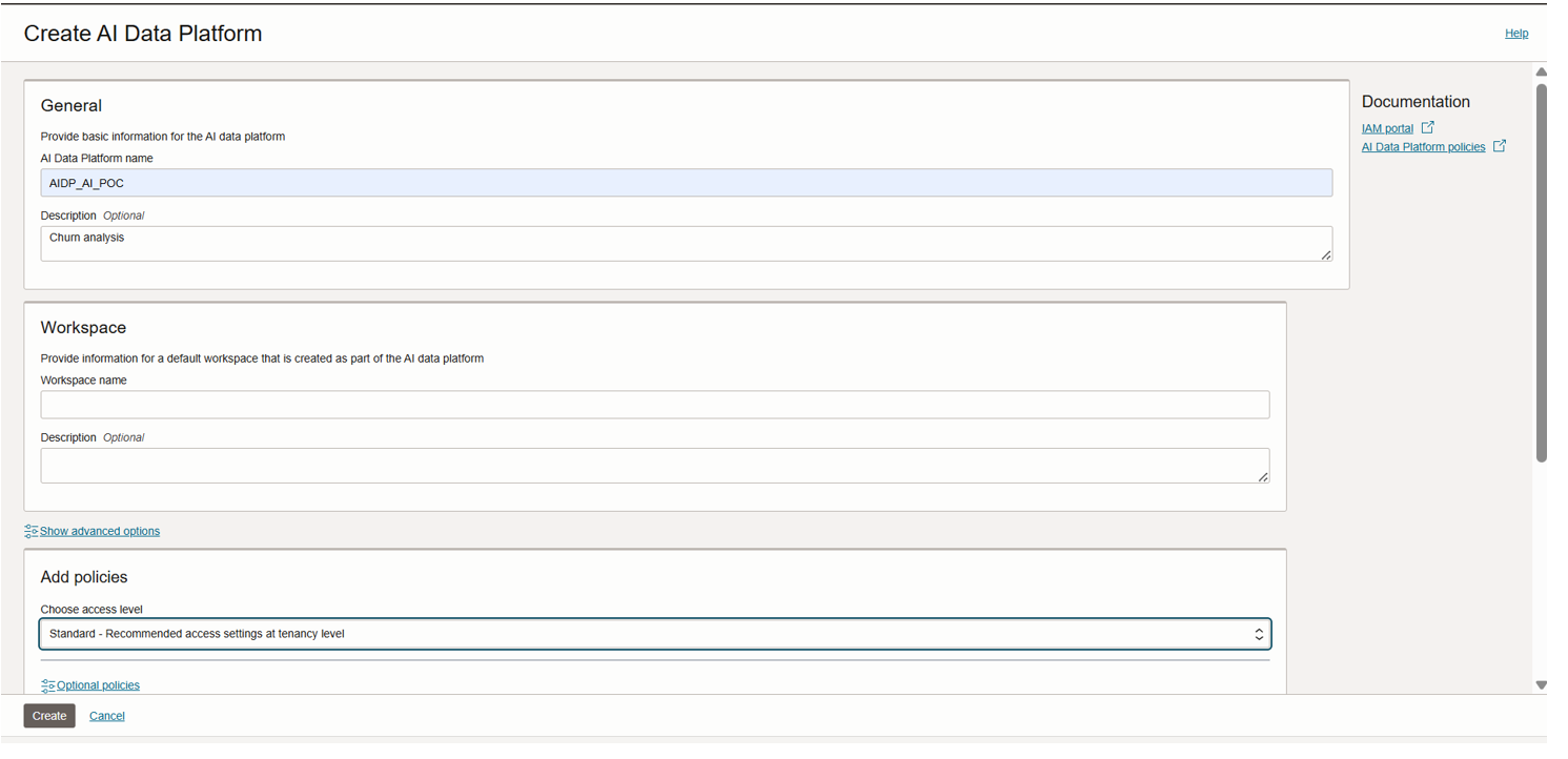 Step 2: Create AI Data Platform. Provide a relevant name and add respective policies.