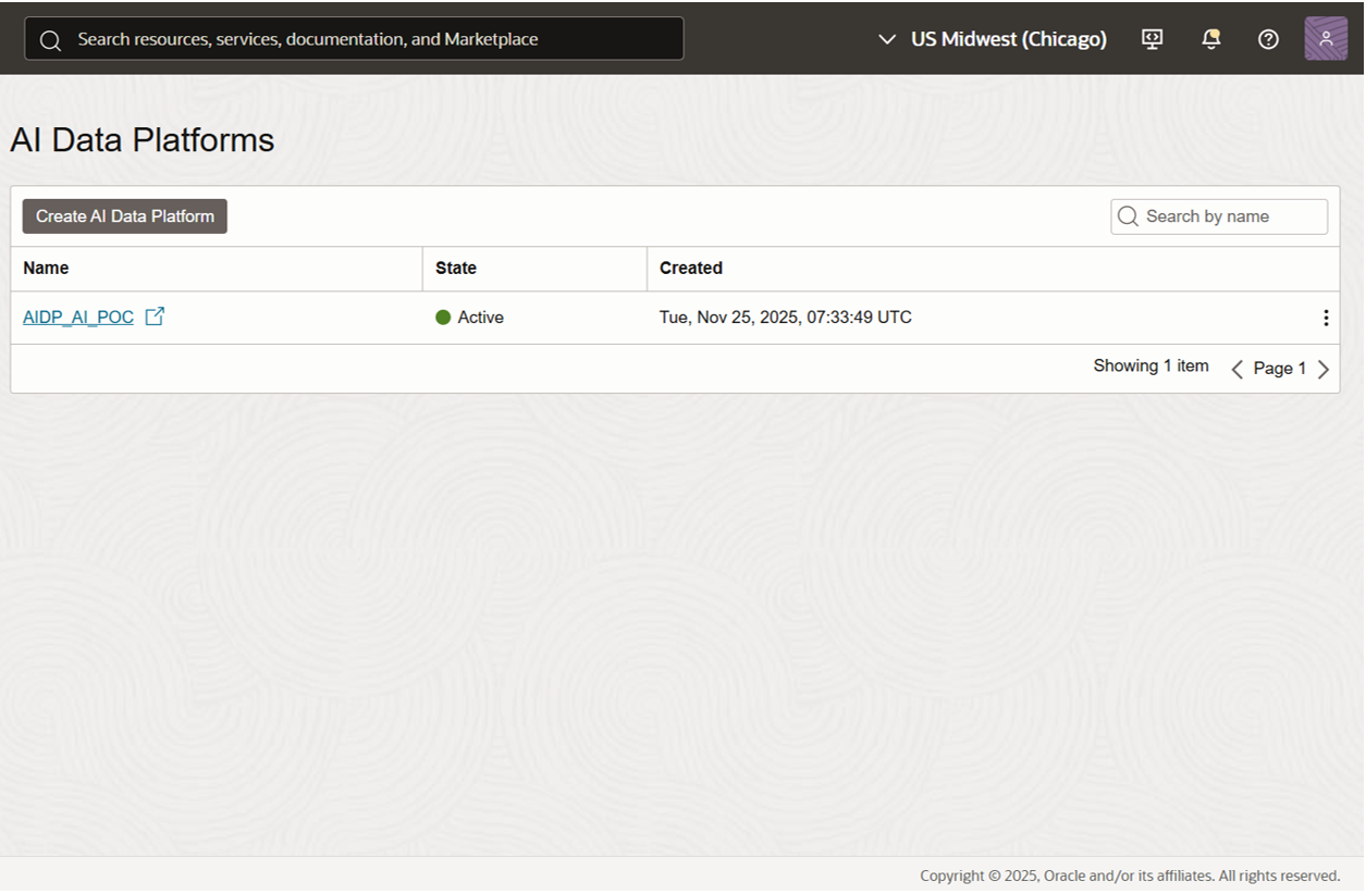 Step 3: The AI Data Platform is created and it looks similar to image below.