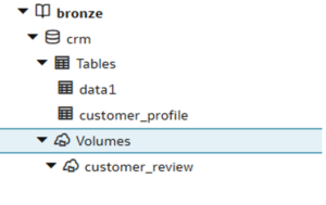 a) Bronze Layer: A Standard Catalog with a schema(crm).