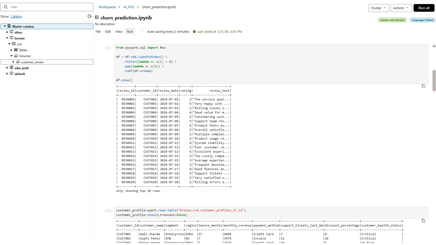 Customer churn is one of the most pressing challenges for enterprises today. While organizations collect large volumes of customer data, its value is often limited by silos, especially between structured customer profiles and unstructured feedback such as reviews and sentiments. Without a unified data and AI foundation, identifying churn risks early becomes difficult and reactive.