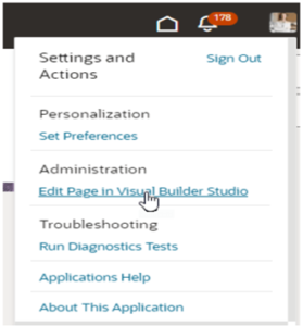 From the Redwood page, select Edit Page in Visual Builder Studio to launch the page in the VB Studio Designer.
