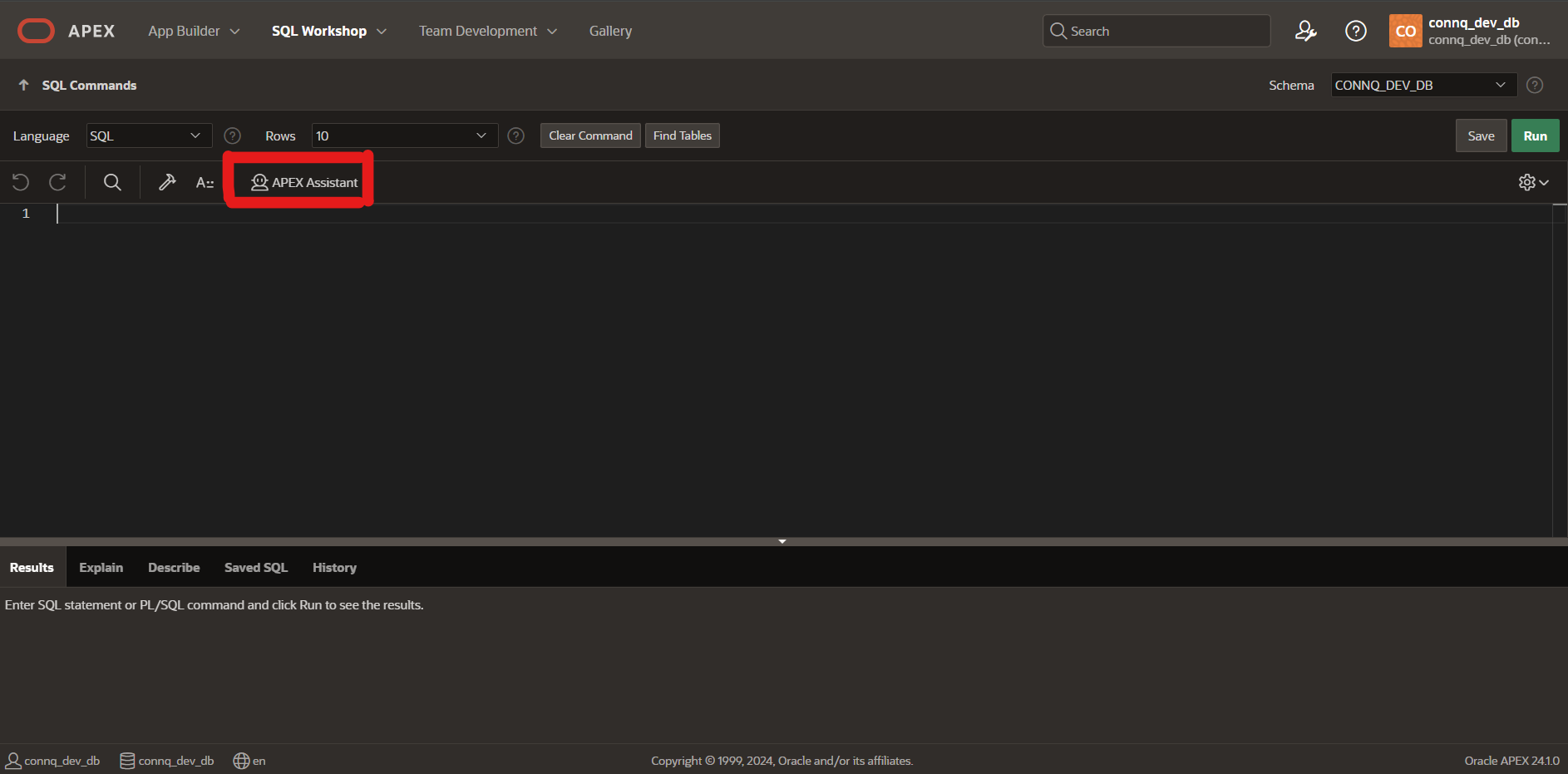 - •Once Generative AI is configured in the workspace, you will find the APEX Assistant available in all code editors within the workspace providing you AI-Assisted App Development. The APEX Assistant assists you in writing complex code and queries.