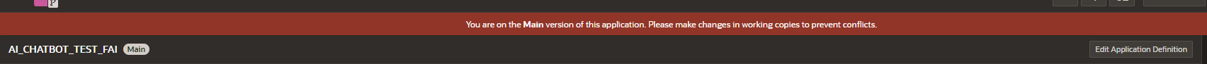 4.1. Enhancement in working copy: When working on the main application the APEX UI will indicate to the developer that they are working on the main application.